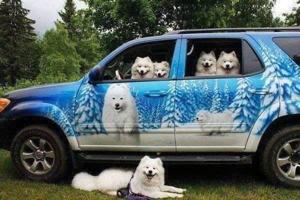 21. And finally, this driver turned their car into a shrine for their dogs, and I'm honestly 100% fine with it
